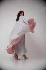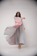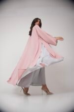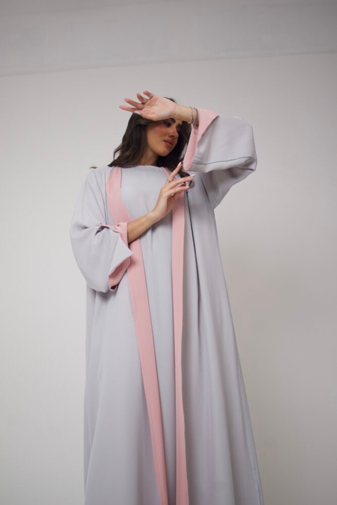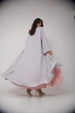 • عباية مصنوعة من قماش ندى كوري مع إمكانية ارتدائها على الجهتين