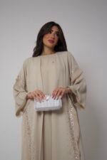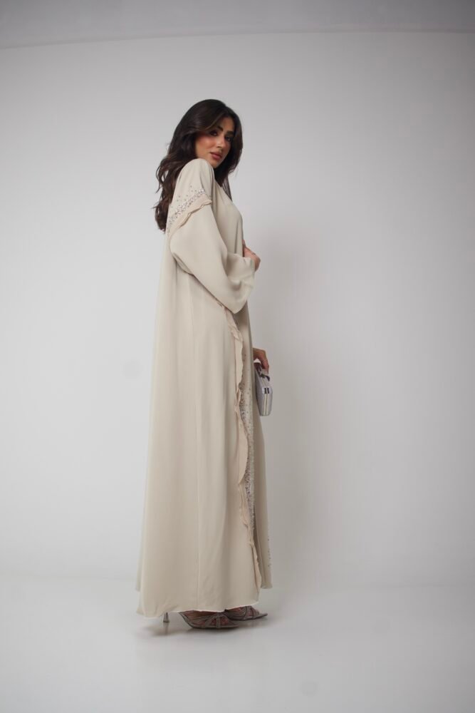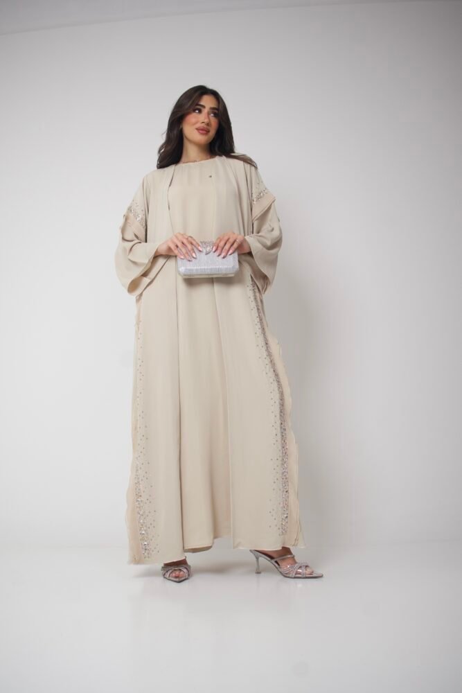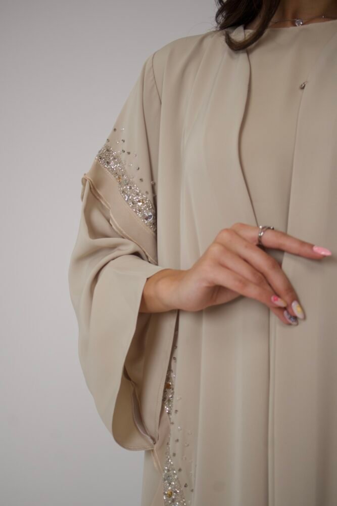 • عباية مصنوعة من قماش ندى الفاخر مع شَكّ خرز كريستالي