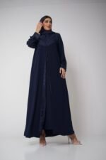 • عباية مصنوعة من قماش ندى مع فصوص خرز مشكوك
