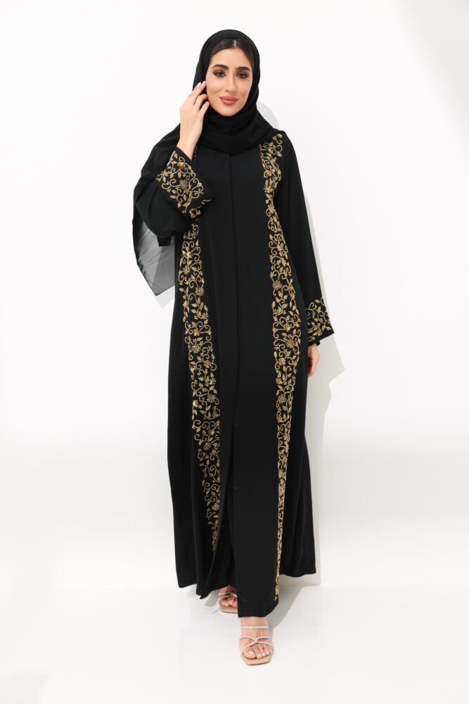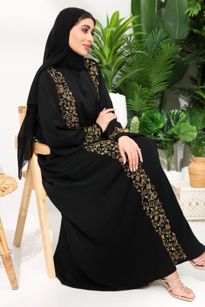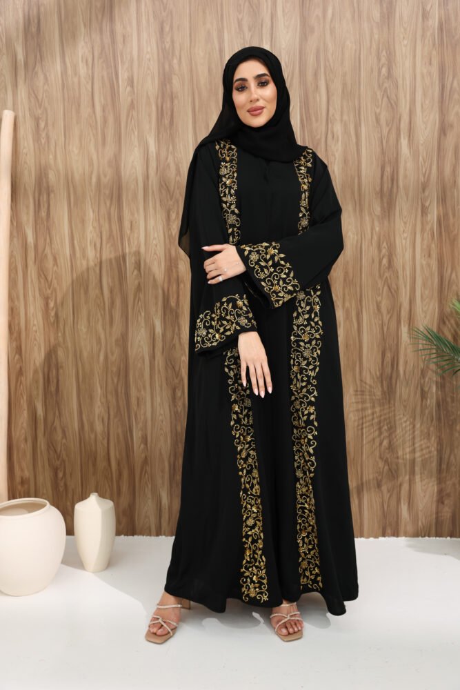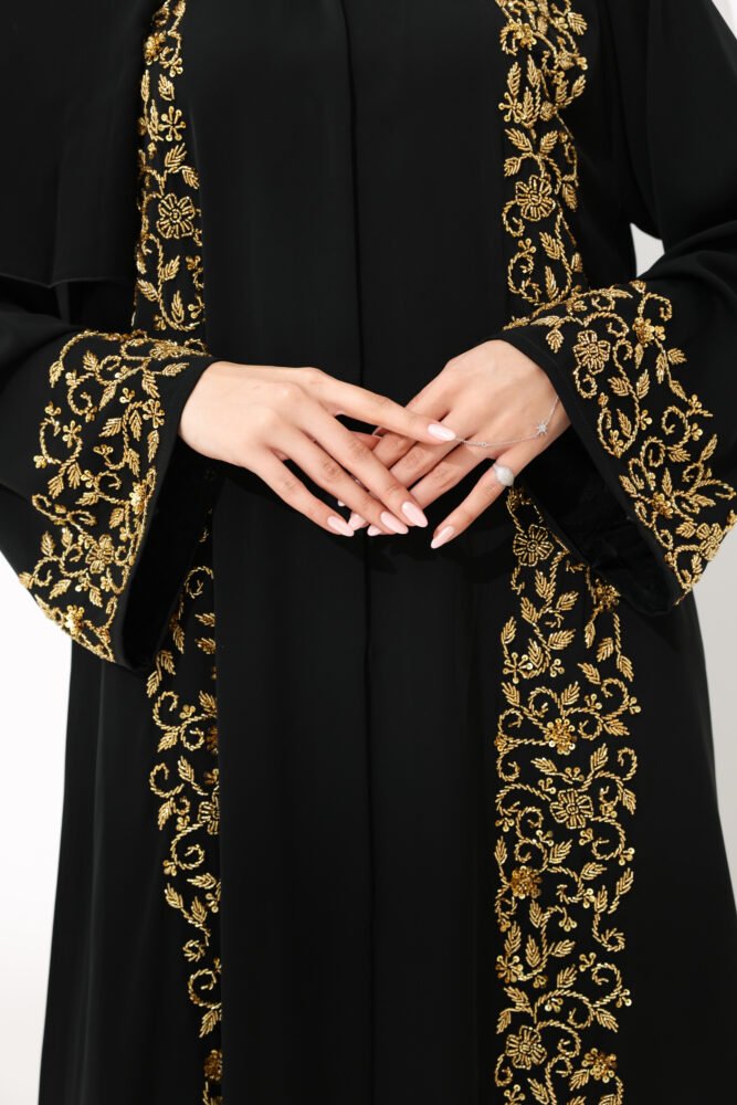 مصنوعة من قماش ندى الفاخر المبطن مع خرز ذهبي